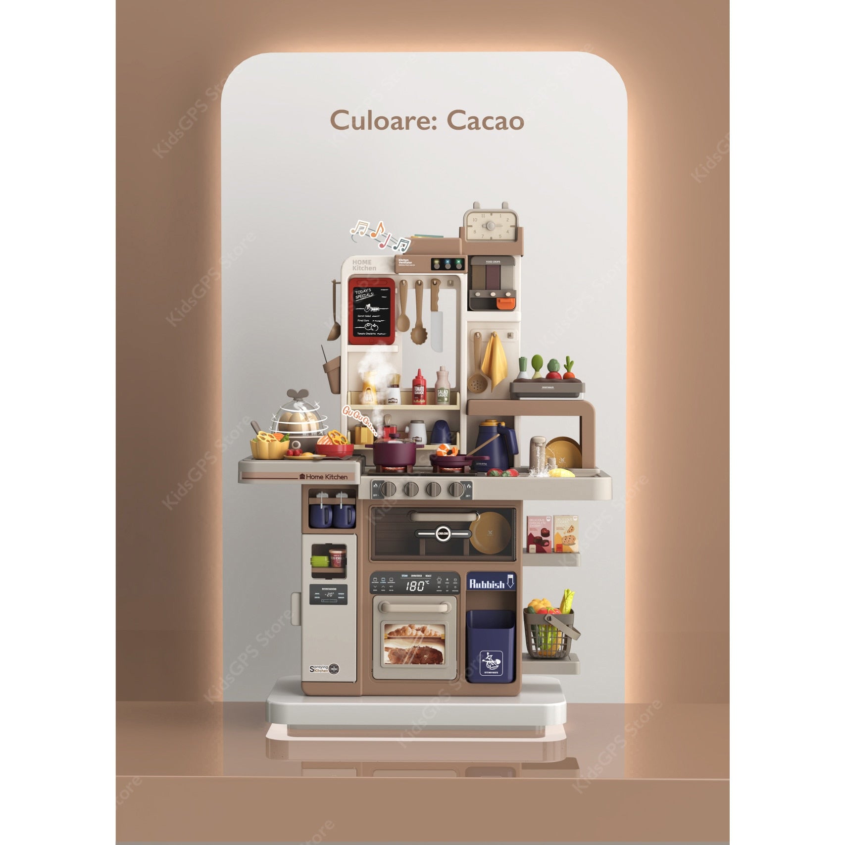 Bucatarie Multifunctionala Copii KidProtect® King Chef DUBLA XXL cu ABURI, Lumini si Sunete Realiste, Chiuveta Circuit de Apa, Tabla Scris, Plita, Cuptor si Frigider, 88 Accesorii, BPA Free, Simulare Gatit, 70CM Inaltime