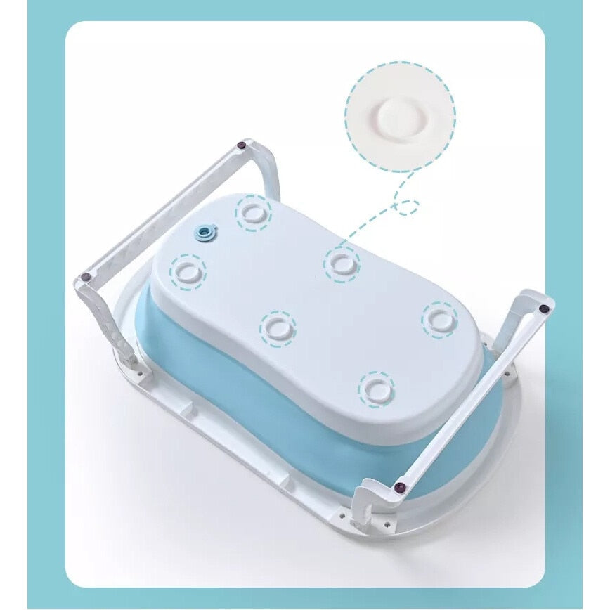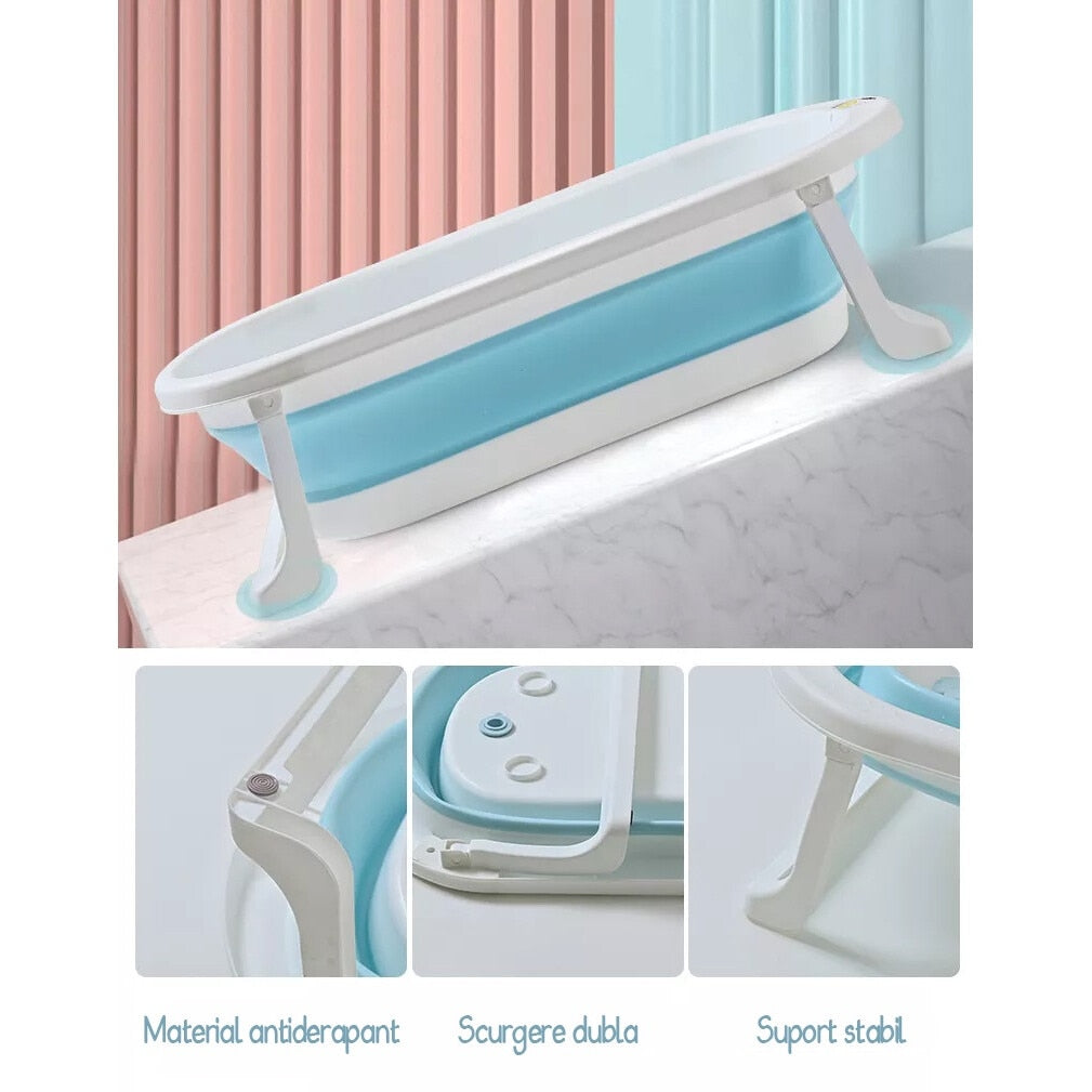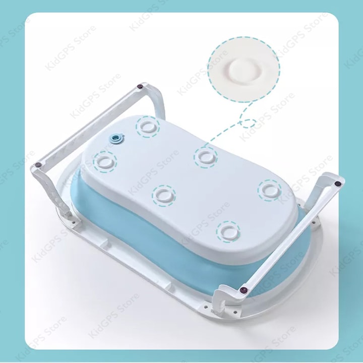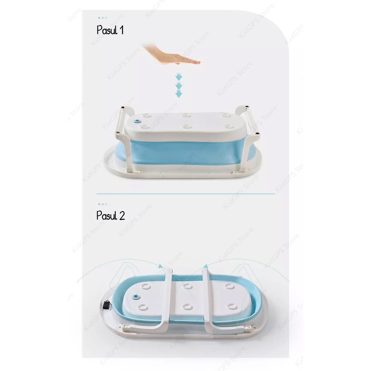 Cadita bebelusi cu pernuta KidProtect® pliabila, cu termometru electronic incorporat, dop scurgere, picioruse antiderapante, design Ergonomic, gaura agatare, verde.