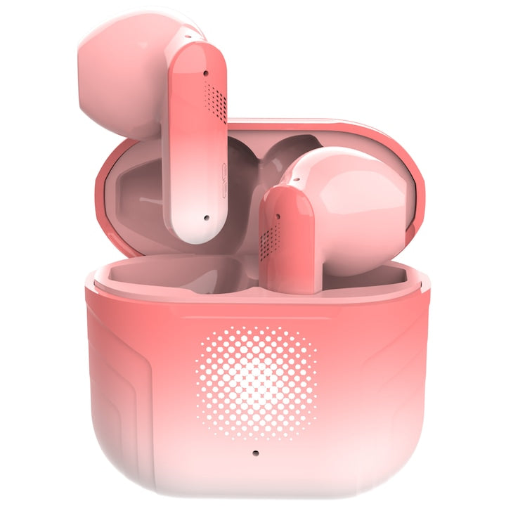Casti wireless audio profesionale Runmus® H11, CVC 8.0, low latency, BT 5.3, imperechere automata, control touch, carcasa magnetica, rezistente la apa, roz