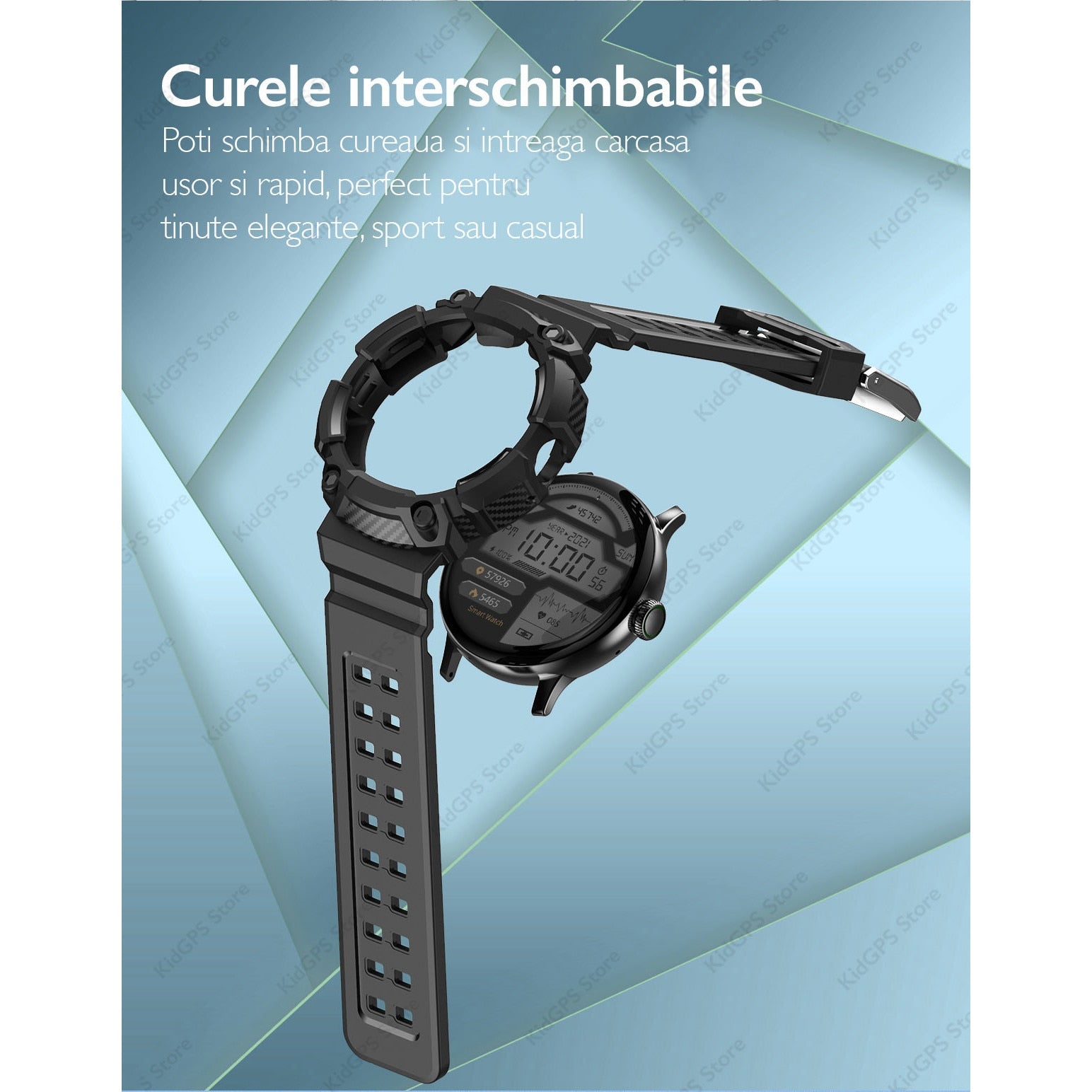 Ceas smartwatch TechONE™ DT2, 1.3" TFT Retina, apel bluetooth, multi sport, ritm cardiac, ECG, notificari, afisare meteo, vibratii, BT 5.0, IP68, negru.