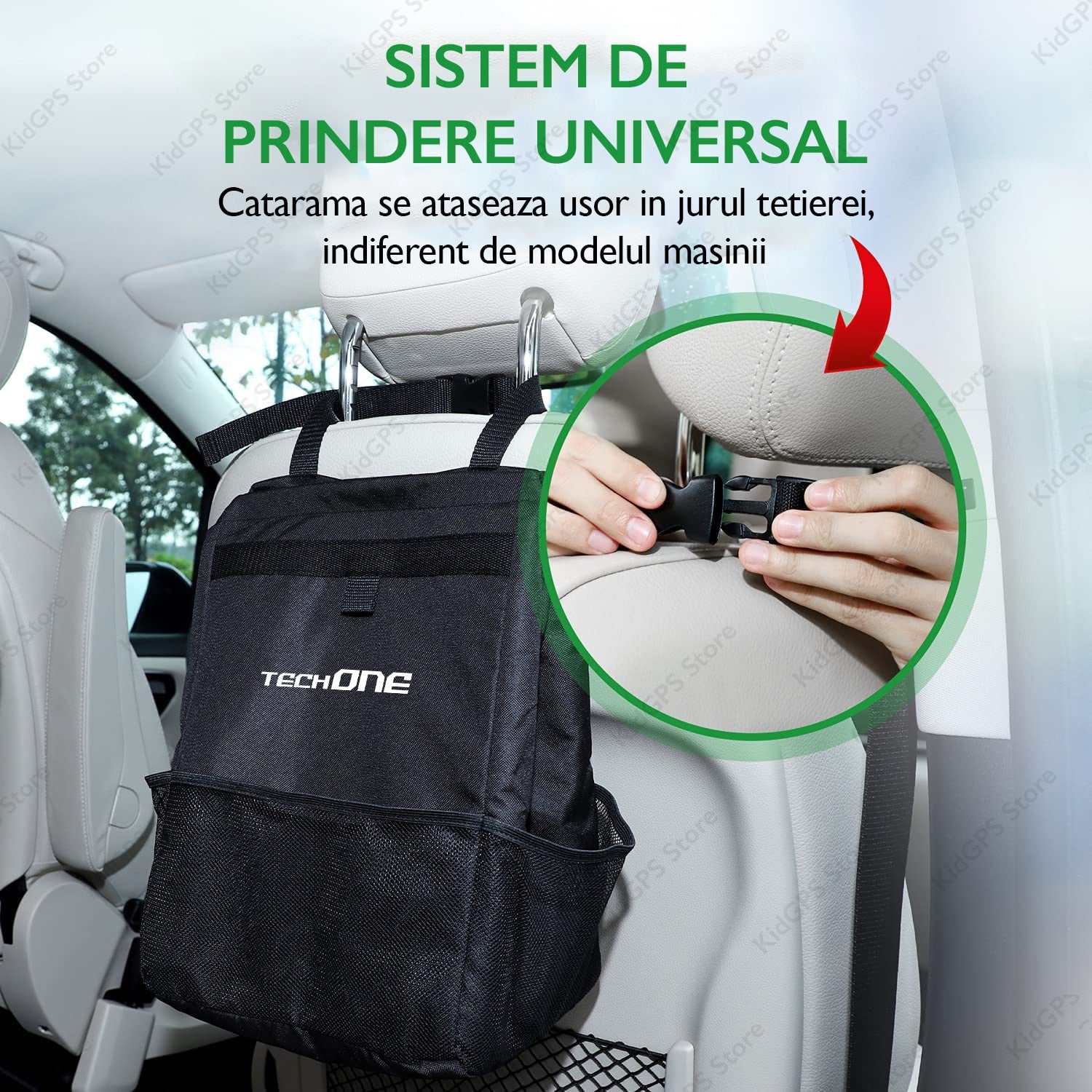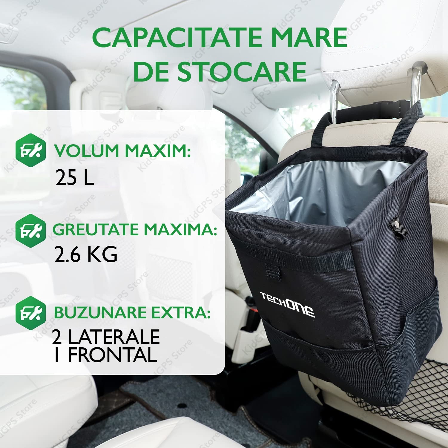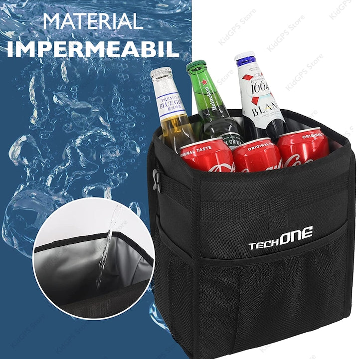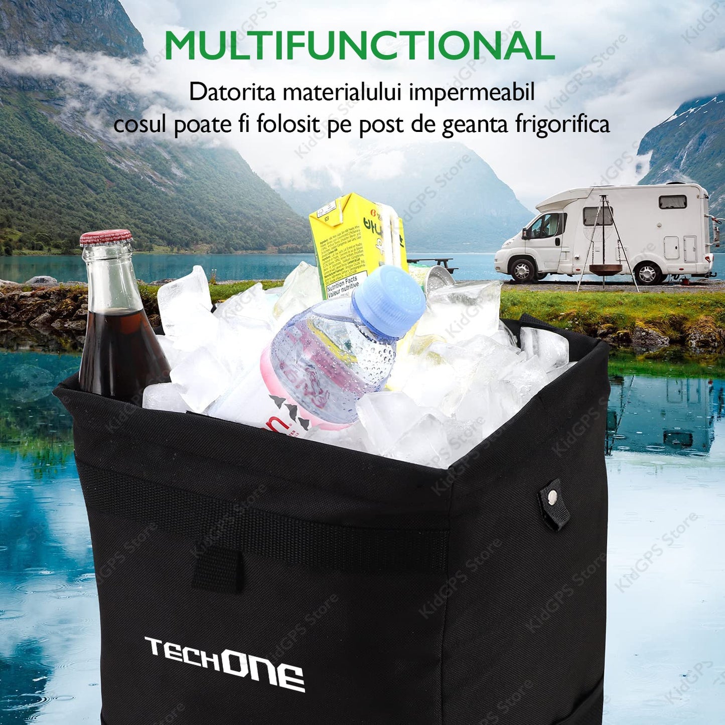 Cos de gunoi auto Techone® Binie Master, pliabil, impermeabil, compartimente depozitare, pentru masina, utilizare compartiment frigorific, negru.