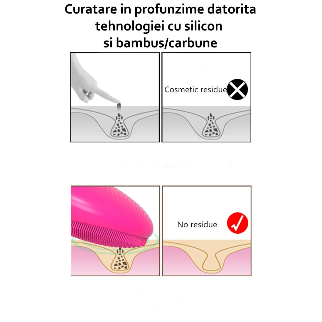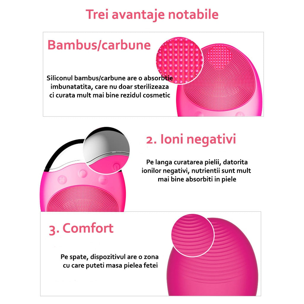 Horigen™ DeepClean Pro V4 elimina in mod igienic, rapid si non - abraziv 99,5% din impuritatile tenului prin intermediul vibratiilor sonice si a perilor din silicon extrem de durabili.