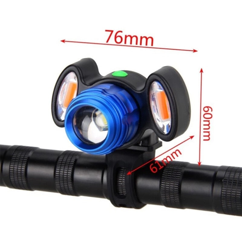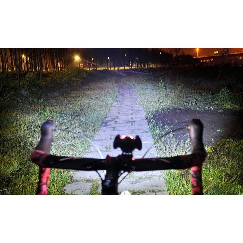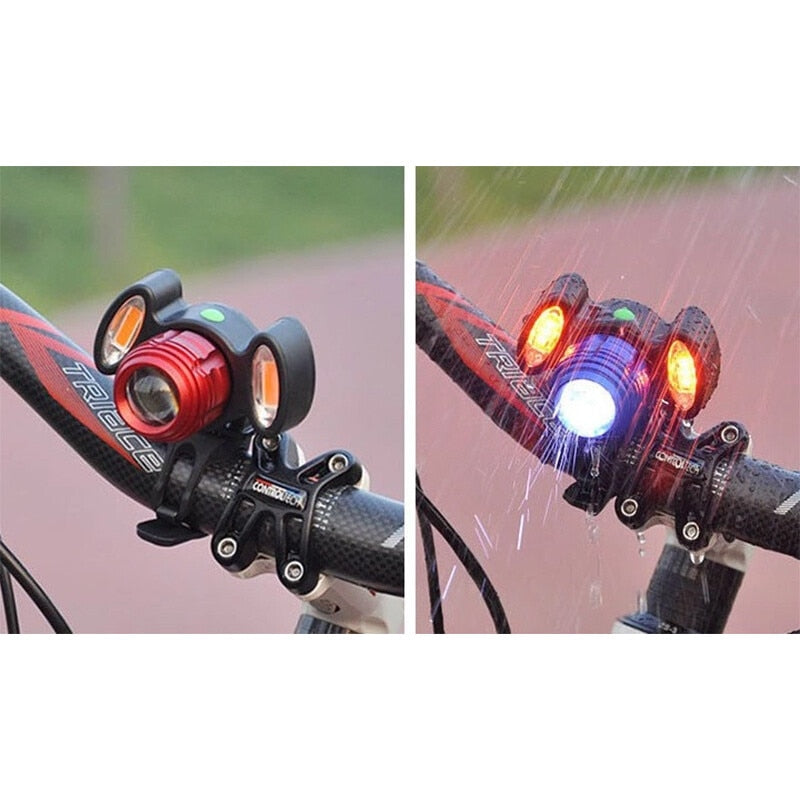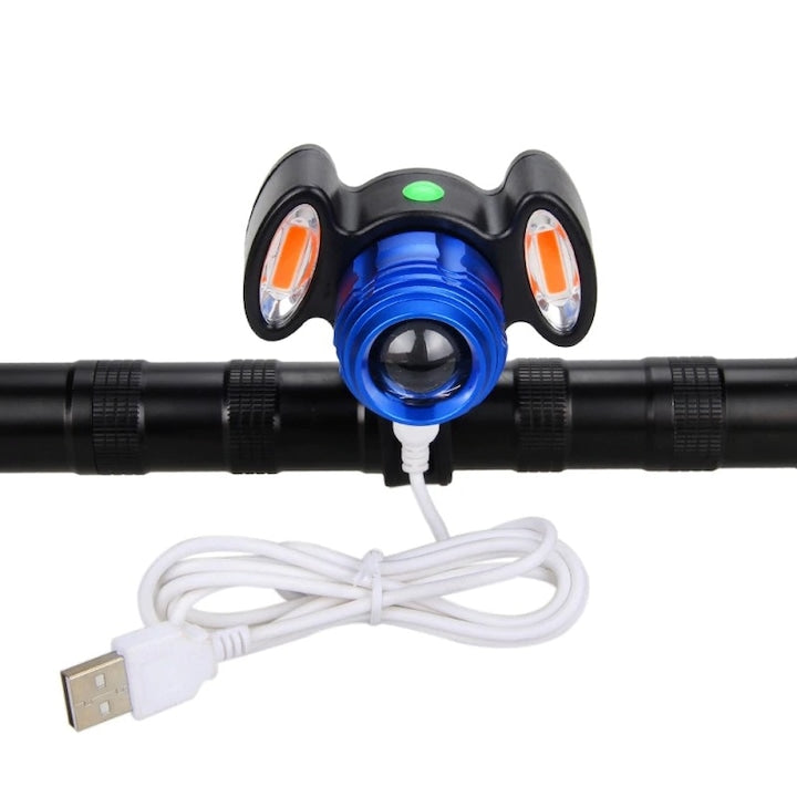 Far bicicleta Huerler® RL03 Pro, Cree XM-L T6 LED + 2COB Red, 2000 lumeni, metalic, acumulator 800mAh, incarcare USB, rezistent la apa, 3 moduri de luminare, negru