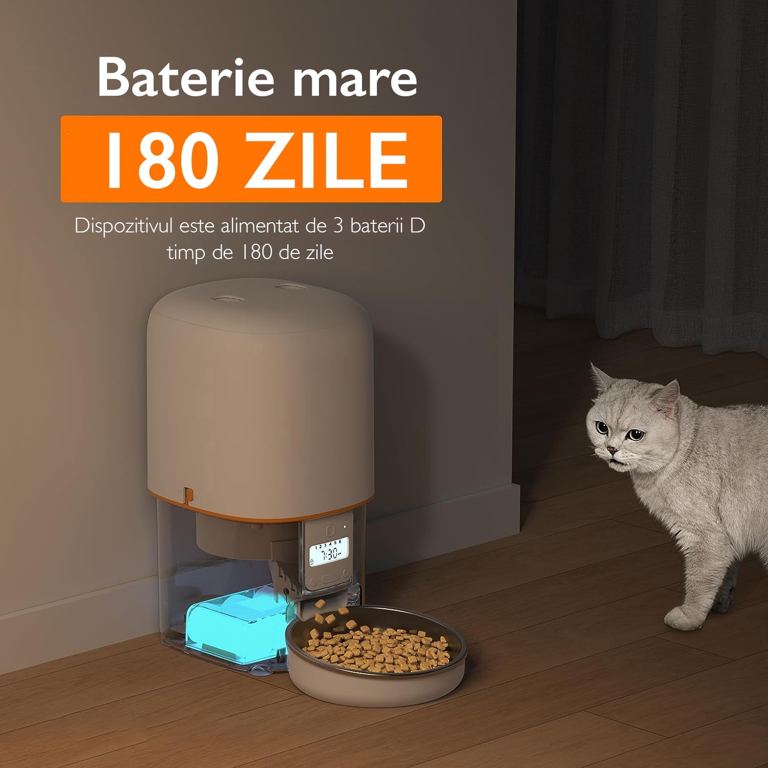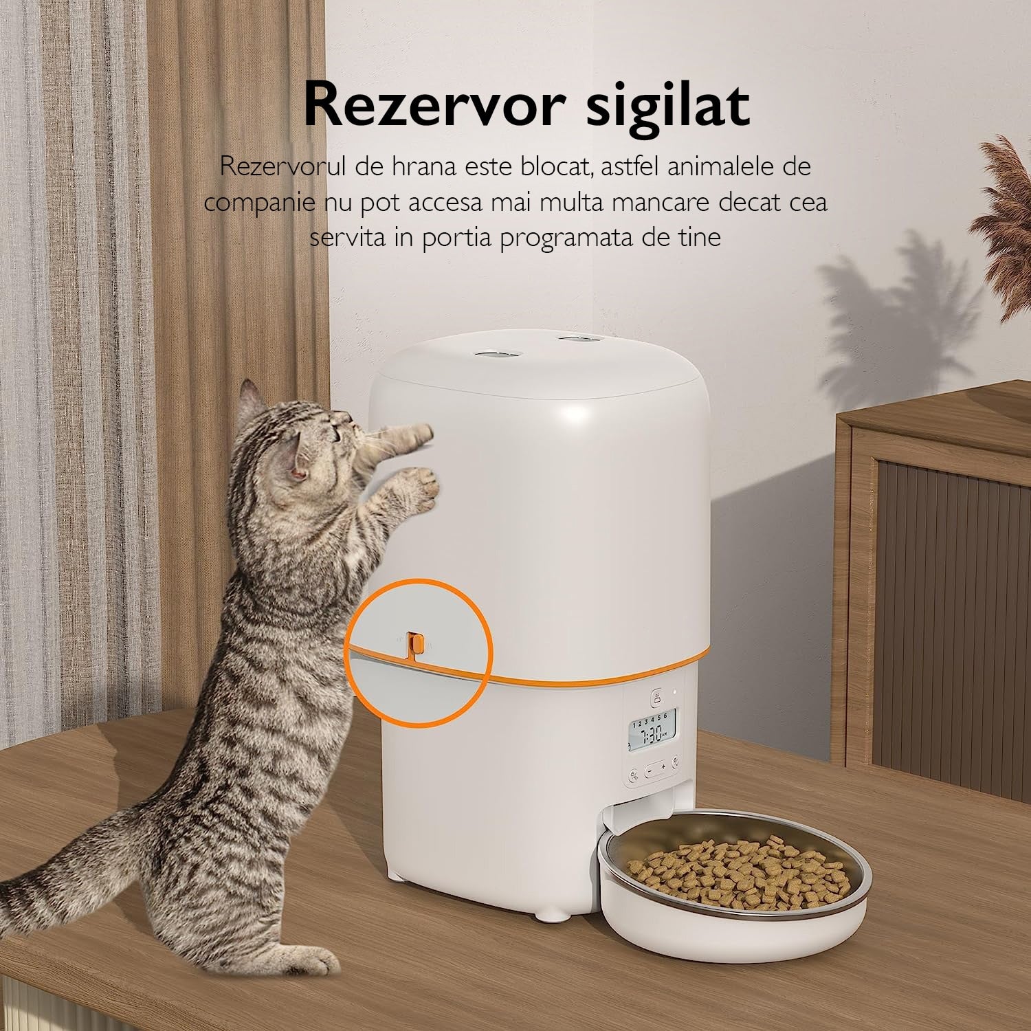 Una dintre caracteristicile sale de baza este hranirea automata dupa un program prestabilit. Acest lucru inseamna ca poti programa aparatul sa ofere portii precise de hrana la orele dorite, asigurand astfel ca animalul tau primeste hrana necesara la momentul potrivit. Aceasta functie este extrem de utila atunci cand nu poti fi acasa pentru a hrani animalul tau sau pentru a mentine o rutina alimentara constanta.