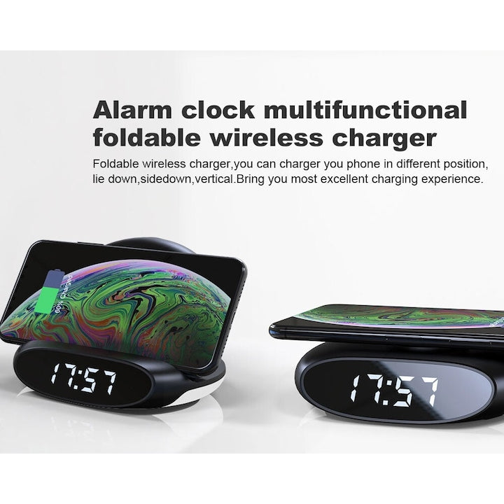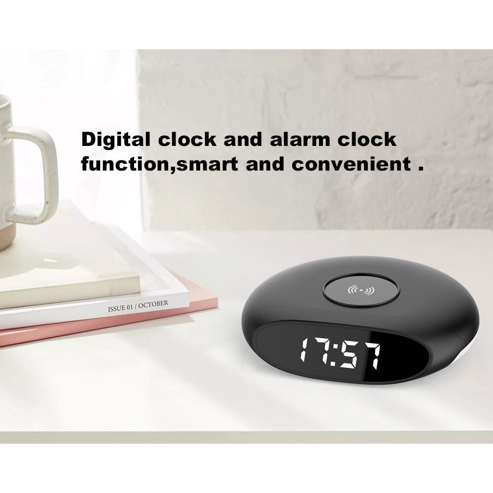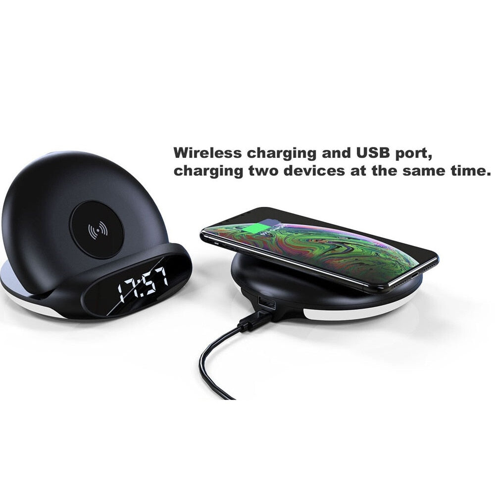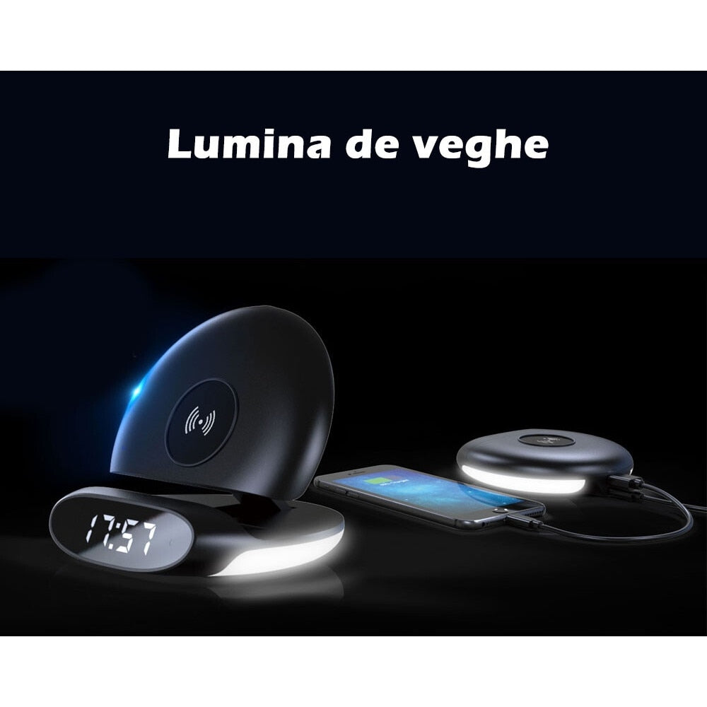 Incarcator wireless birou Loowoko L-AC-015 Pro, 10W, stand/culcat, port USB, ceas, lumina de veghe, touch, Negru