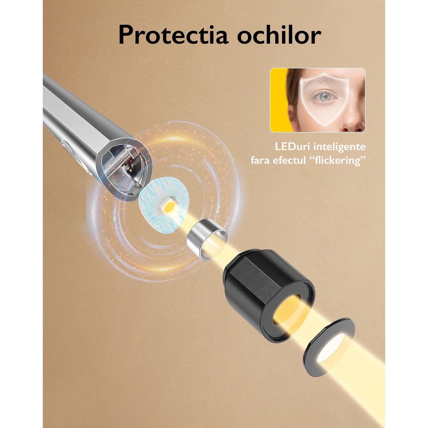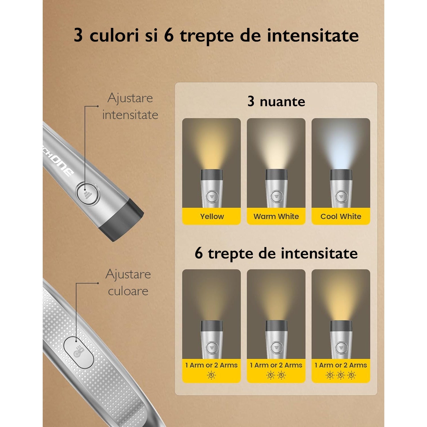 Trei Tipuri de Lumina: Alege intre galben, alb cald si alb rece, pentru a crea ambientul perfect pentru citit, indiferent de ora zilei sau de locatia ta.