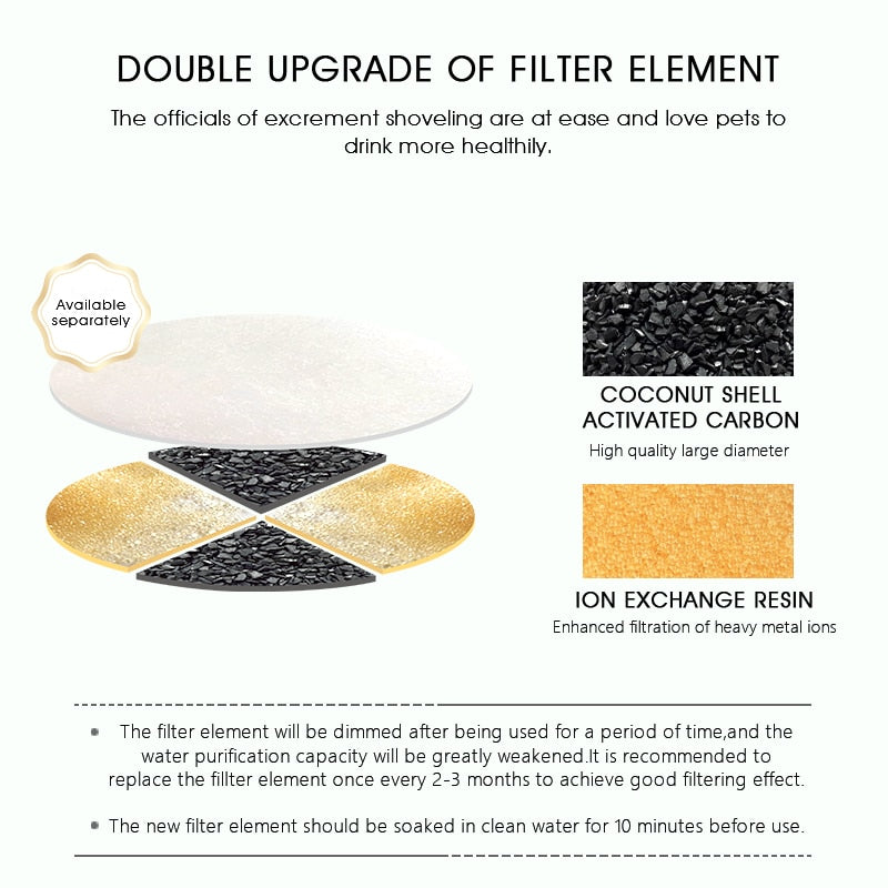 Fiecare fantana de apa pentru pisici vine cu 4 pachete de filtre premium, garantandu-ti ca prietenii tai cu blana primesc doar apa cea mai curata si sanatoasa. Ofera-le un stil de viata mai sanatos si mai fericit cu noul nostru filtru de apa pentru animalele de companie!