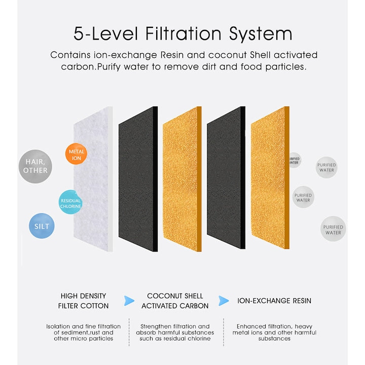 Descopera revolutia in filtrarea apei pentru animalele tale de companie! Cu noul nostru filtru de apa pentru dozatoare automate de apa pentru caini si pisici, aducem ingrijirea si prospetimea la un alt nivel. Cu un inovator Sistem de Filtrare Quadrupla, asiguram cea mai pura si sanatoasa apa pentru prietenii tai blanosi: